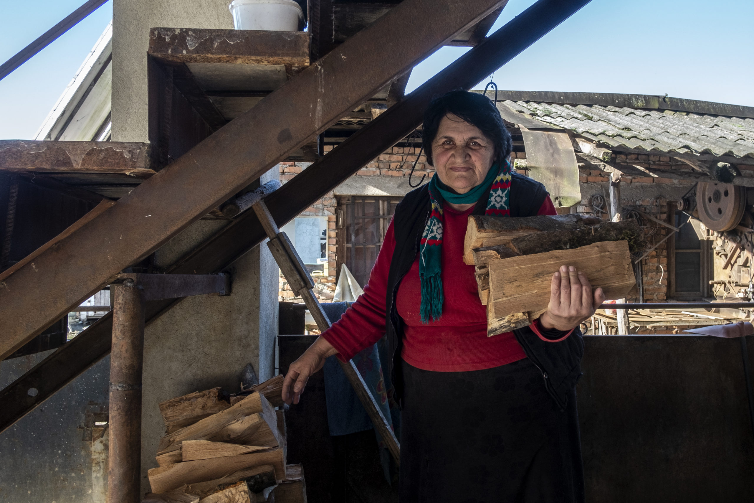Women are responsible for managing heat and hot water in the house. This woman is on her way to her stove to heat it with wood.